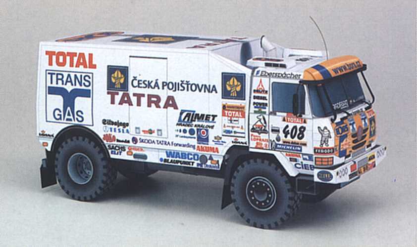 Tatra 815 Dakar 2002 je novinka od firmy PK Graphica. Po úspěšném sestavení modelu Tatra 815 ZZVR 45 16 400 4x4.1, který je v tradičním měřítku 1:32 a rozsahu 5 listů A4, získáte další vůz veterána pouštní rallye Karla Lopraise.