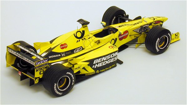 Již jsem vás varoval, že příznivci modelů F1 se mají nač těšit. Komu tedy nestačí níže uvedený free model, může se pustit do dalších výtvorů z dílny P. Špinlera. Do prodeje byl uveden sešit obsahující tři modely F1 v tradičním měřítku 1:24. Prvním vozem je horká novinka, která ještě neukončila sezonu. Po posledním vítězství v Silverstone je zase o něco zřejmější, že M. Schumacher na svém Ferrari F 2002 získá další mistrovský titul. Vůz Jordan EJ 10 pilotoval J. Trulli v roce 2000. Třetím vozem se vrátíme až do roku 1974, kdy V. Brabilla pilotoval March 741.