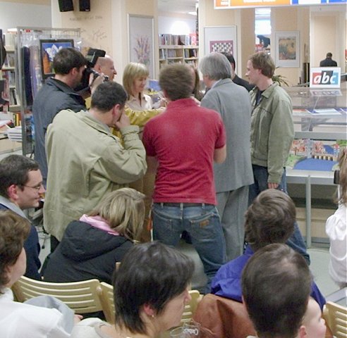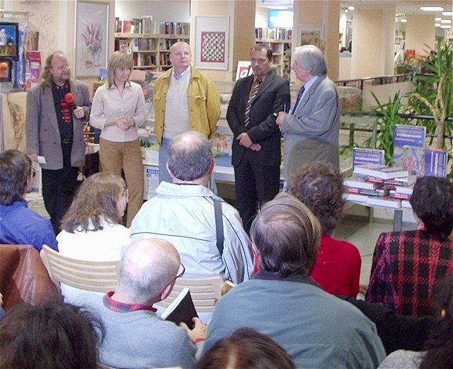 Moderátor akce provedl svolání VIP, kteří nastoupili před vitrínu Se sestavenou MPR a začal výslech. Nedělal jsem si poznámky o přesném pořadí (a navíc jsem zapomněl diktafon), nicméně slovo dostal generální ředitel vydavatelství Ringier T. Böhm, majitel vydavatelství BB/art pan Buchal a šéfredaktorka ABC M. Volfová. Bylo řečeno několik slov o tom, proč se rozhodli vstoupit do projektu VKV (krycí název pro Velká kniha vystřihovánek) a že jde o první projekt takového rozsahu apod... Poté bylo předáno slovo autoru modelu arch. R. Vyškovskému, který se zmínil o některých aspektech vzniku modelu (předlohy jednotlivých budov, možnost zpracování všech detailů dvorků apod.) Pár slov o vlastní stavbě vystaveného modelu pronesl i jeden ze tří stavitelů modelu Fr. Sochor. (identifikace zúčastněných zleva: moderátor akce, M. Volfová, pan Buchal, T. Böhm, arch. R. Vyškovský, v pozadí téměř neviditelná MPR). Vlastní akt křtu naštěstí nebyl proveden politím knihy.