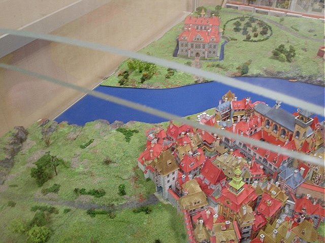 Vitrína s modelem MPR byla do druhého dne přesunut na jiné místo, lehce méně důstojné, než to předchozí. Stále je však možné se k modelu dostat pouze ze tří stran, přičemž nejlákavější partie - zámek - je - jako na potvoru - vzadu. Vitrína má dle mého názoru několik nedostatků. Plexisklo tvořící střechu (tvarovanou do přesně vypočtené křivky zajišťující nejvyšší stupeň ochrany v případě výbuchu) nesedí přesně na boky a v bude-li nenechavec chtít, lehce ji odstraní. Faktem však je, že během slavnostního křtu nebylo zakrytí odejmuto a model bylo možno fotit pouze přes plexi. A to je druhá chyba zastřešení, protože svým zahnutím zajišťuje nežádoucí odlesky, ať se fotograf nakrucuje jak chce. Osobně bych si dovolil doporučit i změnu popisku, který ne zcela jasně říká, co kniha obsahuje. Nejde přeci o model ke knize ale o model v knize obsažený (samozřejmě v 2D). Hned druhý den jsem totiž byl svědkem toho, jak jeden z obdivovatelů modelu MPR do knihy nahlédl a protože při náhodném listování začátkem knihy nalezl jen návodové texty, knihu odložil. A nekoupil.