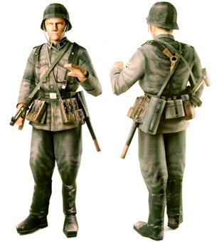 Nejen na webu německého prodejce modelů Scheuer & Strüver jsou k nalezení modely firmy 3D Paper. Ta nabízí velmi zajímavé a netradiční kousky v podobě papírových figur v měřítku 1:3. Ne, to není chyba, opravdu 1:3 - figury mají výšku 550 až 620 mm. V nabídce jsou figury vojáků německé a americké armády z období 2. světové války, středověkého rytíře (16. století) a odvážné bojovnice.