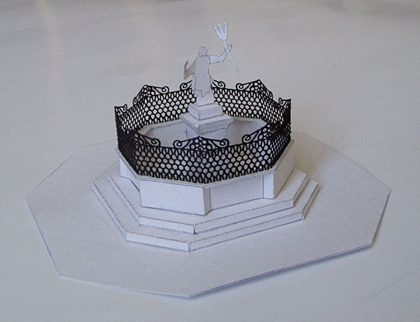 Ale vraťme se k důvodu, proč jsem informaci o tomto modelu pozdržel. Od předchozích vydání se model liší možností osazeni ozdobné ochranné mříže na kašnu. Hned jak jsem ten díl viděl, napadlo mne jej trochu vylepšit. Kdo sleduje moje pokusy s vypalováním papírových doplňků laserem už určitě tuší...