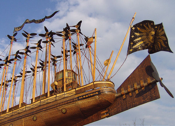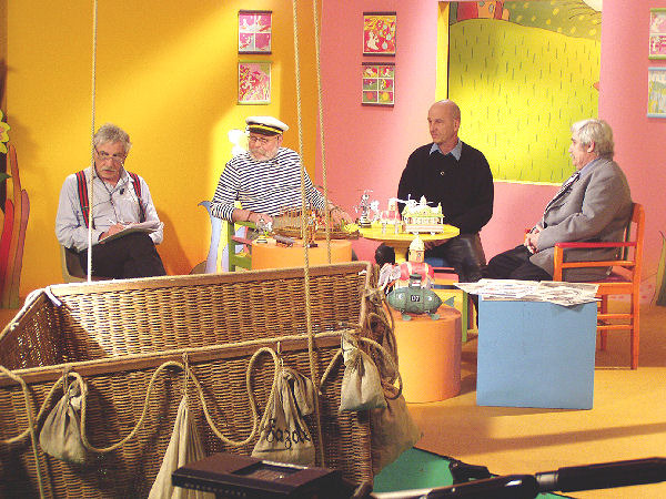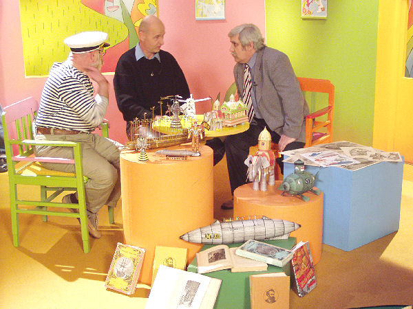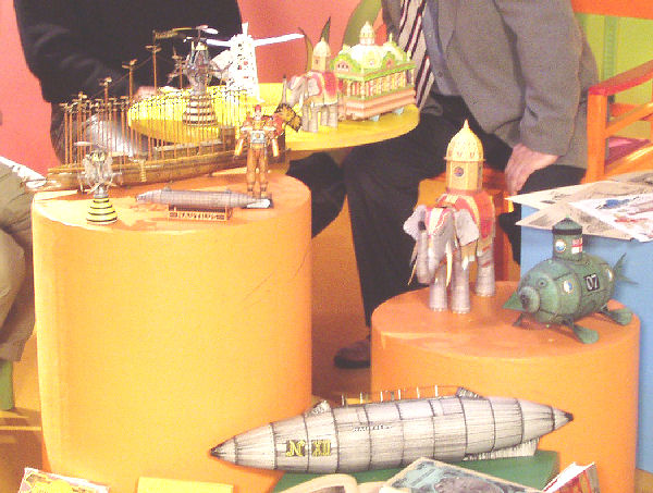 Od kolegy Pepy Kropáčka jsem obdržel malý balíček (8MB N) s fotografiemi z natáčení televizního pořadu ČT1 Edův pohádkový balík, ve kterém vystoupil známý autor papírových modelů L. Badalec. Pro příznivce Julese Verna, těšící se na speciál ABC, ještě detailní pohled na sbírku modelů. Kromě minule již vyjmenovaných modelů lze vypozorovat ještě jakousi figurku stojící před lodí Albatros (snad Robur Dobyvatel?) a pak bílý model letounu v pozadí. Díky reportérské pohotovosti výše uvedeného kolegy vám mohu představit i technologický model