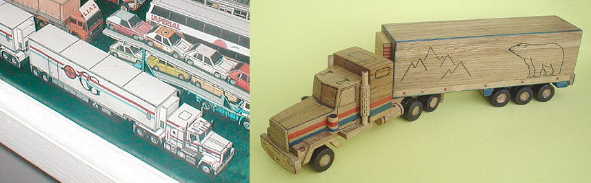 Kdysi dávno jsem svým dětem vyrobil pár dřevěných hraček. Několikero náklaďáků, jedním z nich byl americký tahač Mack. Ano, hádáte správně, předlohou mi byl minibox M. Weinera Mack Super-Liner, který vyšel v ABC č. 21 roč. 35. Historický dvojplošník byl zase vyroben podle vkládané přílohy z ABC č. 20 roč. 39 nazvané skládanka letadla. Uznávám, že to není žádný odvaz, ale papírové modely se staly předlohou i jiným...
