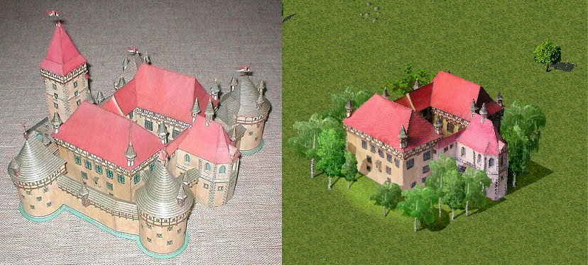 Ve hře se vyskytuje ještě další kousek - Romantický hrad, ten však již své (předpokládané) předloze moc věren není - posuďte sami.