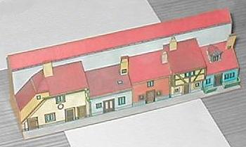 a to díky jeho mánii vyrávět zmenšeniny papírových modelů a to včetně těch již zmenšených. Legendou se stal model Zlatá ulička od R. Vyškovského, původně vydaný ve formátu pohlednice. Michal si počkal na vydání reklamní tiskoviny, kde byl model vytištěn na formátu zhruba 1x2 mm (asi jsem to trochu neodhadl přesně, možná to bylo o trochu více, bohužel však přesný rozměr nyní nezjistím) a toto pak pojal jako klasickou vystřihovánku - prostě to rozstříhal a slepil. Výsledné měřítko vidno na obrázku tohoto unikátu. (Foto znázorňuje repliku, neboť původní model byl sežrán papouškem, musím se Michala optat, jak dopadl. Ten pták, samozřejmě.) Kromě tohoto Michal zmenšil a sestavil i řadu dalších modelů (jejichž foto vám však neposkytnu, protože je to pod rozlišovací schopností; nikoli prezidenta republiky, ale mého digitálu). Svou úchylku se Michal snaží omlouvat výmluvami na nižší výměru bytové plochy.