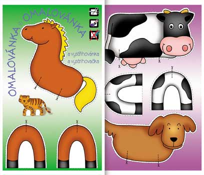 Nyní už nemusíte bloudit po neznámých webech. Firma DITIPO v rámci programu Svět Zábavného Učení nabízí vystřihovánku s omalovánkou s názvem Farma, kde najdete nejen vše výše uvedené: kozu, krávu, psa, kočku, prase a ovci. V edici jsou dále nabízeny sady: Safari ( žirafa, slon, krokodýl, tygr...), Piráti (piráti, koráb, poklad, papoušek, mapa...) a Na hradě (král, princezna, princ, čaroděj, rytíř, hrad, drak...). Díly jsou z rubu potištěny jednobarevně a lze je tedy využít i jako omalovánku. Sešity jsou určeny dětem do zhruba 7 let věku.