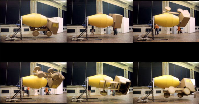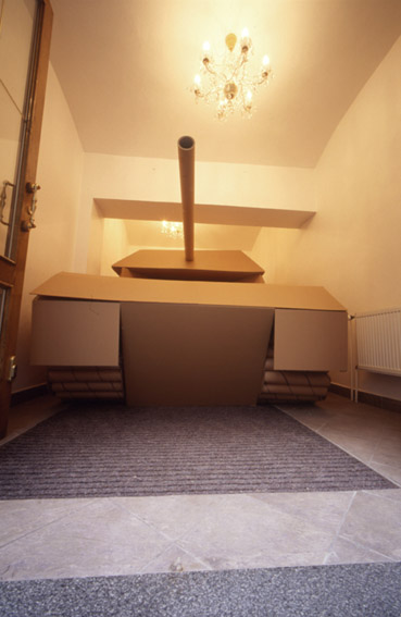 Domníval jsem se, že se další podobný blázen jen tak nenajde, leč spletl jsem se. Velkým konkurentem, alespoň co se měřítka týče, je Pepovi umělec Robert Barta. Ten se rozhodl v M 1:3 zhotovit papírový mix. Nikoli mixér, ale domíchávač betonu! A nikoli obyčejný, zkusím napovědět: "Kroutící moment". Autor si prostě zamanul vytvořit mix, jemuž jaksi ukáplo a zatuhlo, čímž následně došlo k tomu, že buben statuje a zbytek automobilu rotuje... Zmiňuji se o tom proto, že model byl vytvořen z papíru, třebaže kostra je kovová. Jak to dopadlo si můžete důkladněji nastudovat na autorových stránkách. Protože však orientace je tam poněkud náročnější, zkuste rovnou stránku dotčené výstavy. (foto R. Barta)