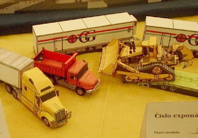 Z těch druhých, papírových, mne zaujaly následující stavby: MPR či Staročeská chalupa, kostel Ostrava-Hrabová anebo šikmá věž v Pise. Z miniboxů třeba Skalka nebo letiště Slatina, zde v optimistické variantě International airport Kunovice - rok dokončení stavby neuveden. Z dalších mne zaujal třeba dobře sestavený UDS 110p anebo plachetnice Žlutý lev. Zděšení rozhodčích (necertifikovaných dle standardů CPM) - ostatně jako vždy - zajistily exponáty Romana Vlacha - Marder a druhý, zatím rozpracovaný model (zde bych stavitele poprosil o upřesnění názvu, děkuji). Mladý autor studený Tomáš - sorry - Tomáš Studený - vystavoval své vlastní modely autobusů.
