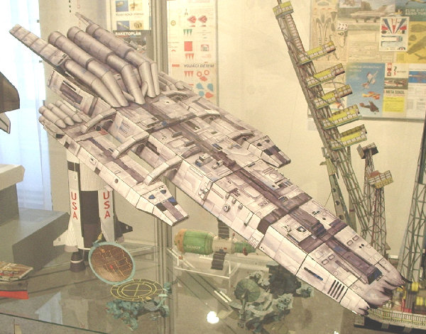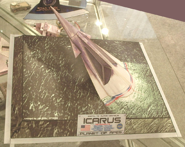 Dovolil bych si tu malé odbočení týkající se posledně jmenovaného autora. Když mne kdysi žádal o zařazení odkazu na jeho stránky, odmítl jsem to s poukazem na fakt, že na svém webu nabízí ke stažení naskenovaný model kosmické lodi Prometheus, který vyšel v ABC. Autor se zdravě naštval a vyšvihl svou verzi Promethea v takové kvalitě, že o pár nocí později v ABC č. 11 r. 48 znovu vydaný Prometheus autorské dvojice ŠoK se mohl pouze stydět, kdyby nebylo známo, že vznikl o více než 25 let dříve. V komiksech ABC se autor inspiroval i dalším modelem kosmické lodi Galaxia se zničenou přídí - zde zvětšená na výstavě v Muzeu policie v roce 2005. O jeho schopnostech tvorby grafických detailů se můžete přesvědčit třeba na modelu kosmické lodi Icarus z filmu Planeta opic.