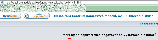 webu cpm.cz", myslelo to rozhodně vážně. Jen se seklo v tom, že to bude na www.cpm.cz. Takže se nyní můžete vrhnout na adresu http://papirovemodelarstvi.cz/forum/ , kde je zprovozněno nové diskusní fórum s mnoha tématy. Dále pak... už nic. Možná zatím jde jen o testovací provoz, protože na webu CPM o tom není ani zmínka. Pokus o přechod na main page domény bude s největší pravděpodobností neúspěšný...