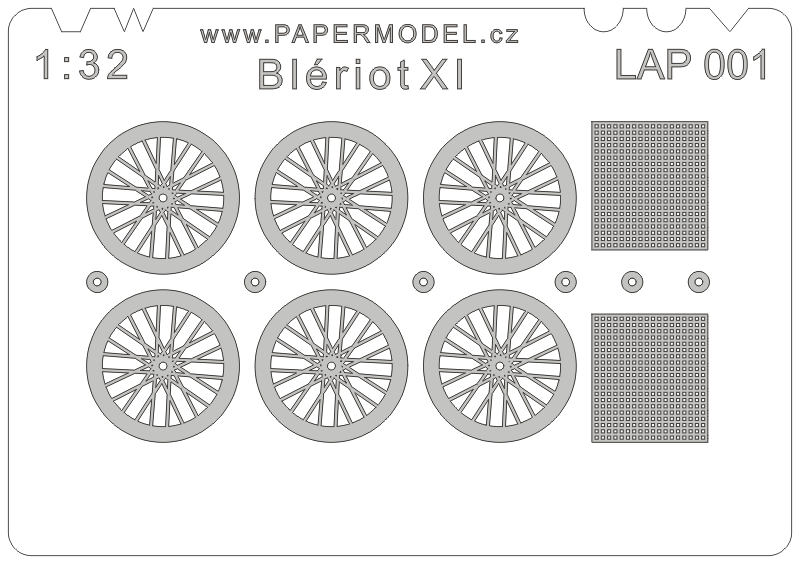 Pro model historického letounu Blériot XI, vydaného firmou Integraf, je k dispozici sada LAP001 obsahující díly pro kola s výpletem a mřížky pro získání plastičtějšího vzhledu dílu chladiče motoru.