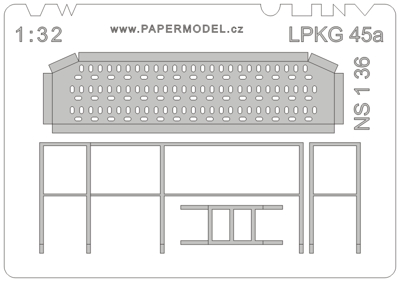 Pro model sklápěčkového návěsu s vanovou korbou NS 1 36 od vydavatelství PK Graphica je k dispozici sada s díly plošiny se zábradlím a žebříkem, které se nacházejí na čele vany návěsu. Sada je k dispozici pod kódem LPKG45a.