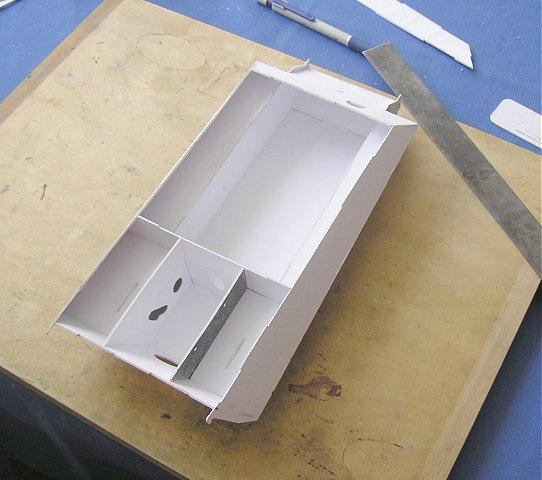 Dobře slepená kostra každé papírové stavebnice je bezpochyby základ dobře postaveného modelu. Proto je potřeba tuto kostru udělat co nejpevnější, ale hlavně v síle udané výrobcem modelu. Já jsem přišel na to, že toto není jenom o tom navrstvit na sebe požadovanou tloušťku tvrdého papíru. Klasická, tzv. školní, čtvrtka se moc nehodí na podlepování kostry trupu. Tento papír je příliš trhavý a nemá podle mne tu potřebnou pevnost. Při vyřezávání částí dílů trupu se mi takto vyříznutý papírový díl na rubu trhá a není potřebně ostře vyříznutý. Používám ho sice, ale vždy mezi tyto papíry nalepím klasický kancelářský papír 80g. V praxi to vypadá tak, že vystřižené díly kostry trupu si potřu Herkulesem (na tyto velké díly se mi osvědčil starší štětec, kterým lepidlo roztírám do tenkého filmu) a usadím na školní čtvrtku. K vymačkání bublin s přebytečným lepidlem používám zbytek trubky o průměru 5 cm, kterým přejíždím po nalepených dílech a vymačkávám lepidlo zpod nalepených dílů. Když nemám nikde žádnou bublinu, tak podlepované díly na chvíli zatížím knihami. Mezitím potřu lepidlem kancelářský papír, vytáhnu nalepené díly a nalepím je na něj. Opět zbytkem trubky vymačkávám přebytečné lepidlo zpod nalepených dílů a znovu nalepené díly odložím pod knihy. To stejné provedu ještě dvakrát, takže nakonec jsou díly trupu podlepeny školní čtvrtkou, kancelářským papírem, opět školní čtvrtkou a nakonec zase kancelářský papír.