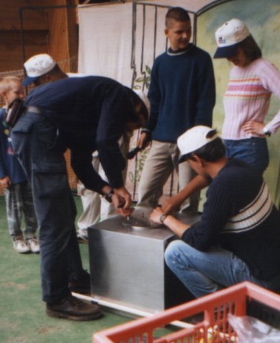 Ze strany Ábíčka byla celá akce zajišťována osazenstvem redakce, která v současnosti čítá 9 osob. Jejich výčet najdete v tiráži ABC, zde za všechny uvádím šéfredaktorku ABC paní M. Volfovou, redaktorku vystřihovánek paní I. Kudrnovou a redaktora přes techniku pana Z. Ležáka, který je pachatelem celé záležitosti s časovou schránkou. Přítomni byli i zástupci Zoologické zahrady v Praze-Tróji, kteří zajistili i technickou pomoc při výrobě vhodného otvoru v matičce Zemi. Původně bylo sice uvažováno o umístění otvoru a následně i schránky v některém z výběhů. Největší šance připadly vlkům, ovšem vznikla obava, že by tato chytrá zvířata mohla schránku vyhrabat dříve než čestná delegace v roce 2025. Druhým negativem byla skutečnost, že by k uložení schránky vůbec nemuselo dojít, neboť vlci toho dne nedostali snídani J .