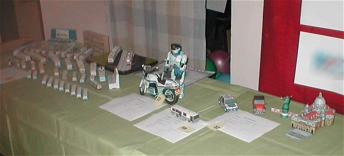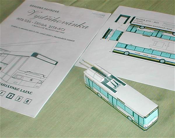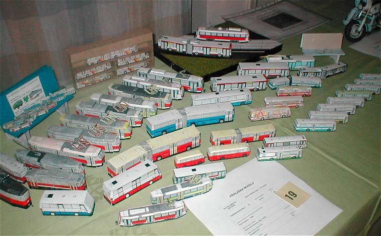 Mateřskou školku v ulici Mezi domy jsem musel trochu hledat, neboť uvedená ulice se v mém atlase nenacházela. Organizátoři s papírovými modely letos začínali a protože, bohužel, došlo k souběhu termínu s akcí v Neratovicích, účastníků v papírech nebylo mnoho - veškeré soutěžní modely se vešly na dva stolky. Jak vidno ze soutěžních lístků, šlo o modely pouze čtyř soutěžících, avšak sbírka vozidel MHD Vl. Číhala určitě stála za shlédnutí. P. Číhal je autorem těchto modelů, ve spolupráci s DP v Mariánských Lázních již vydal model trolejbusu Škoda Tr21.