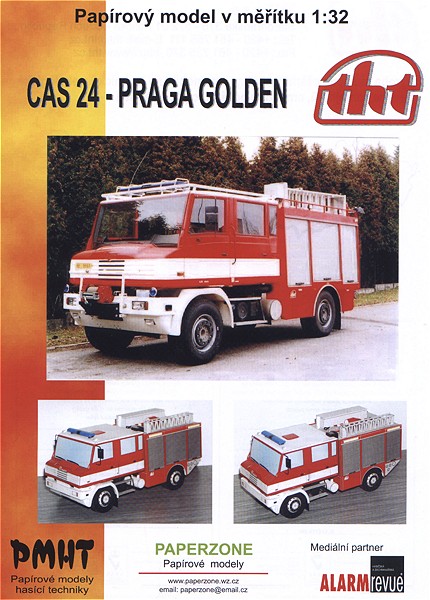 technické parametry:Model cisternové automobilové stříkačky CAS 24 - Praga Golden byl vydán v říjnu 2003. Vydavatel bohužel pro znázornění protiskuzového plechu užil stejnou kresbu jako u minulého modelu. Konstrukce modelu obsahuje pohyblivé skupiny - zatáčení předních kol, sklápění kabiny, výsuvný osvětlovací stožár, zadní schůdky.