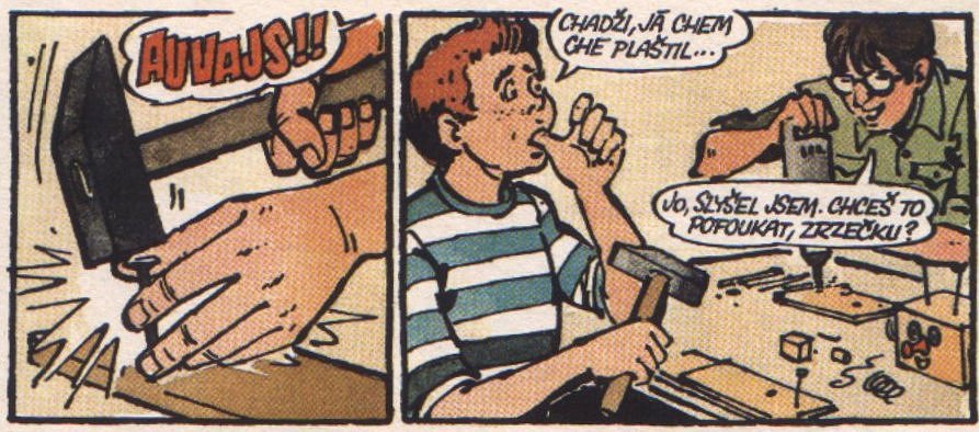 "Vždyť říkám, vážený pátrači po historii naší RP 89A, mé pravé občanské příjmení je Drábek. V komiksech vystupuji pod svým pravým příjmením, to by totiž nikoho nenapadlo, vymyslel to Kája. Změnil jsem si jen jméno, ve skutečnosti jsem Miloš Drábek."