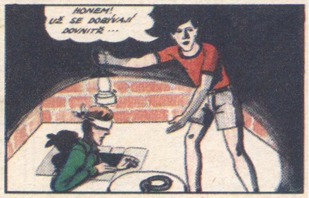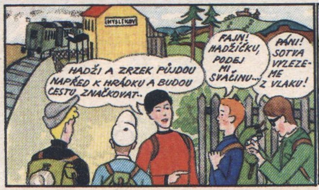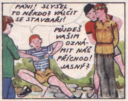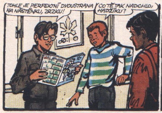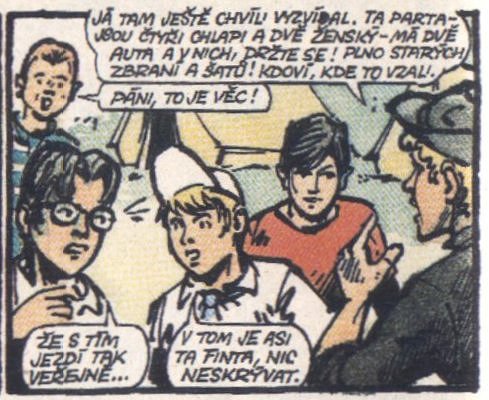 "Zpola úspěšný pátrači po naší identitě, s ohledem na platný zákon č. 101/200 Sb. o ochraně osobních údajů nejsem oprávněn tyto údaje Ti poskytnout. Do programu příští klubové schůzky však zapracuji výzvu pro Robina, Zrzka i Káju, aby se s Tebou spojili, ať můžeš svůj úkol úspěšně dokončit."