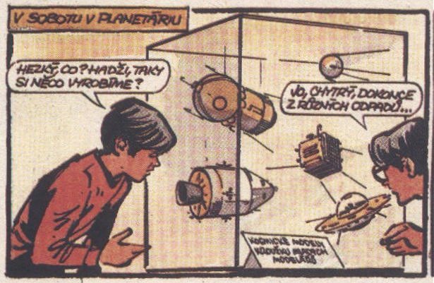 Co však dělají v planetáriu? To pro mne byla opravdu záhada. Ani jsem nemukal a sledoval další dění. Strážci se tahali s dalšími a dalšími krabicemi, jichž přivezli plné auto. Jak se ukázalo, krabice byly plné modelů kosmické techniky, samé družice, rakety, raketoplány. Strážci je umisťovali do vitrín, přičemž vybírali nejlepší umístění pro každý kus. Mezitím jsem ovšem omdlel, neboť po již zmíněném zatajení dechu mi nějak došel kyslík. Probral mne až venčící se pes. Když se můj zdravotní a psychický stav poněkud srovnal, vrátil jsem se ke svému poslání. Strážci tou dobou již měli modely nainstalované ve vitrínách, veškerý personál hvězdárny s úctou a z povzdálí tiše sledoval jejich kmitání.