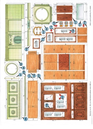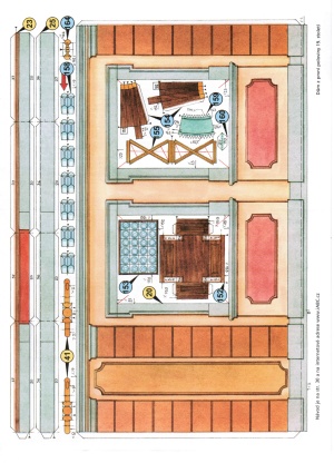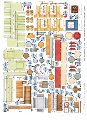 křesílko, pohovka, oválný stůl, sekretář (sklenice na víno, jídelní stůl 1ks, kulatý stůl, sekretář 1ks) POZOR! Nabízena je pouze jedna z částí modelu! M 1:20 rozsah: 2 × formát A4 autor: Richard Vyškovský vydavatel: ABC